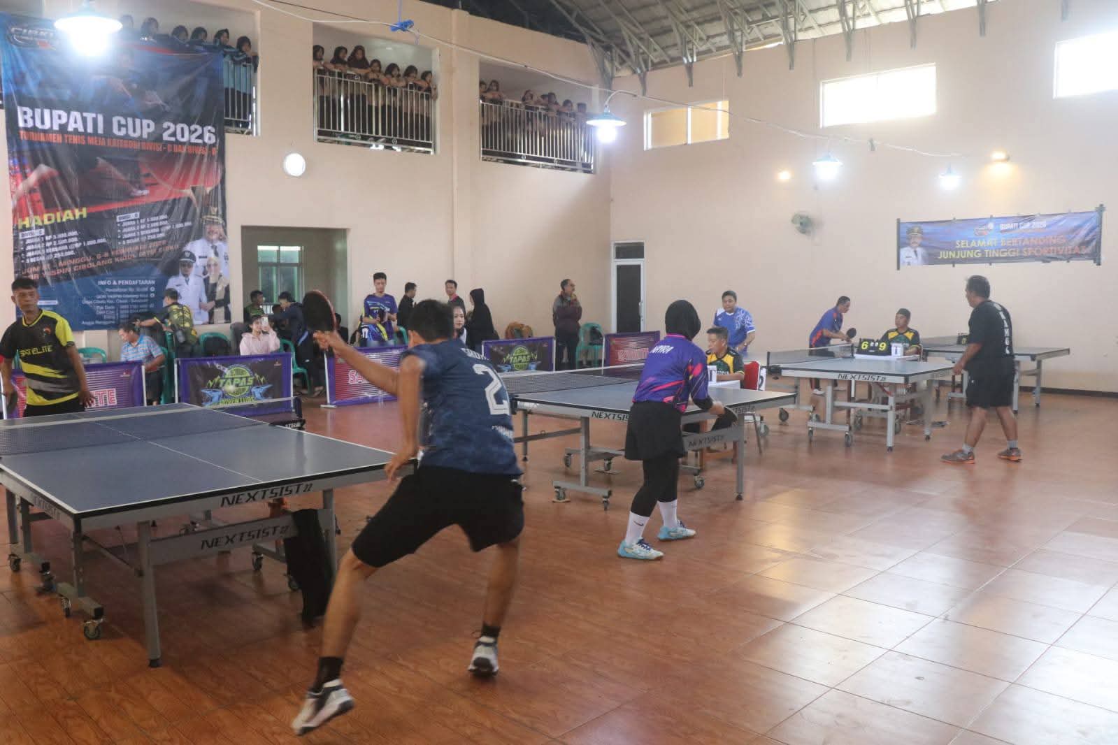 Turnamen Tenis Meja Bupati Cup 2026 dibuka langsung oleh Bupati Sukabumi. Pembukaan ditandai dengan pemukulan bola servis pertama oleh Bupati sebagai simbol dimulainya pertandingan.